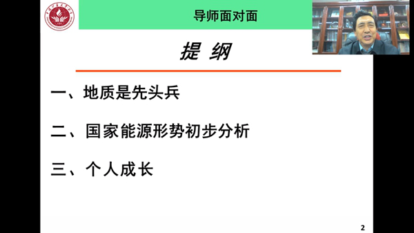 武强从地质是先头兵、国家能源形势初步分析、个人成长三个方面展开论述。首先,他指出,地质行业是一个在发展中的行业,并从亲身经历出发,讲述中国矿业从无到有、从弱到强的发展史,引用周恩来的话“不论是工业还是国防,都和地质工作分不开。地质工作要先行”来说明地质专业的发展与国家需求密切相连。