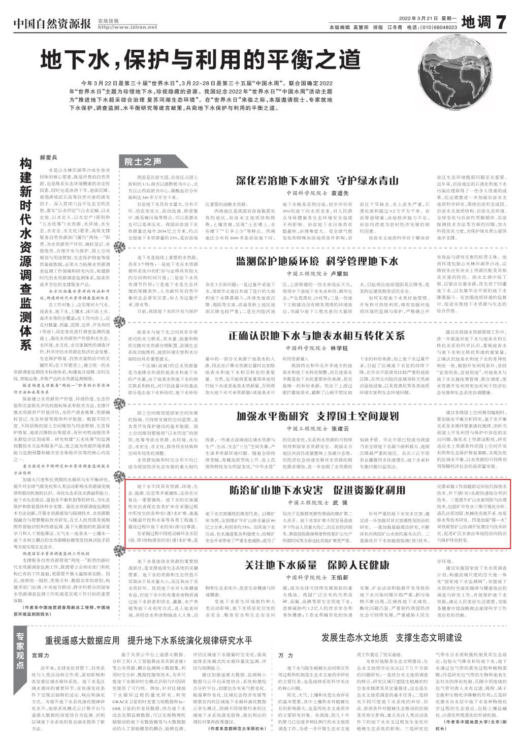 《中国自然资源报》邀请中国工程院院士武强为2022年“世界水日”“中国水周”建言