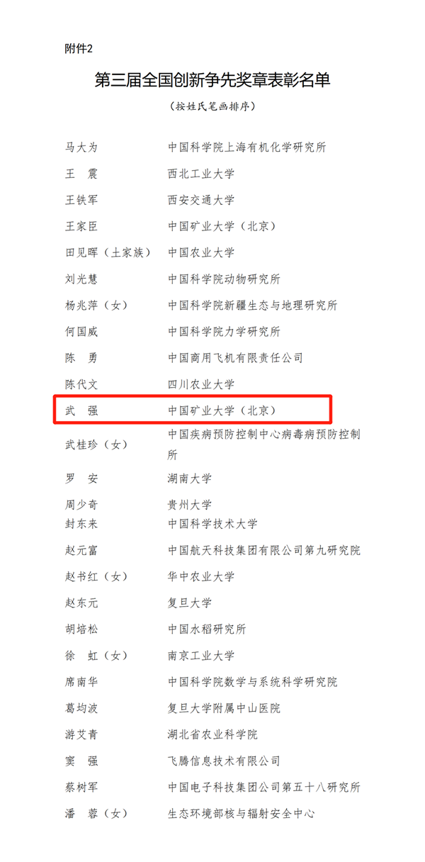 喜报|国家工程中心武强院士荣获第三届全国创新争先奖章