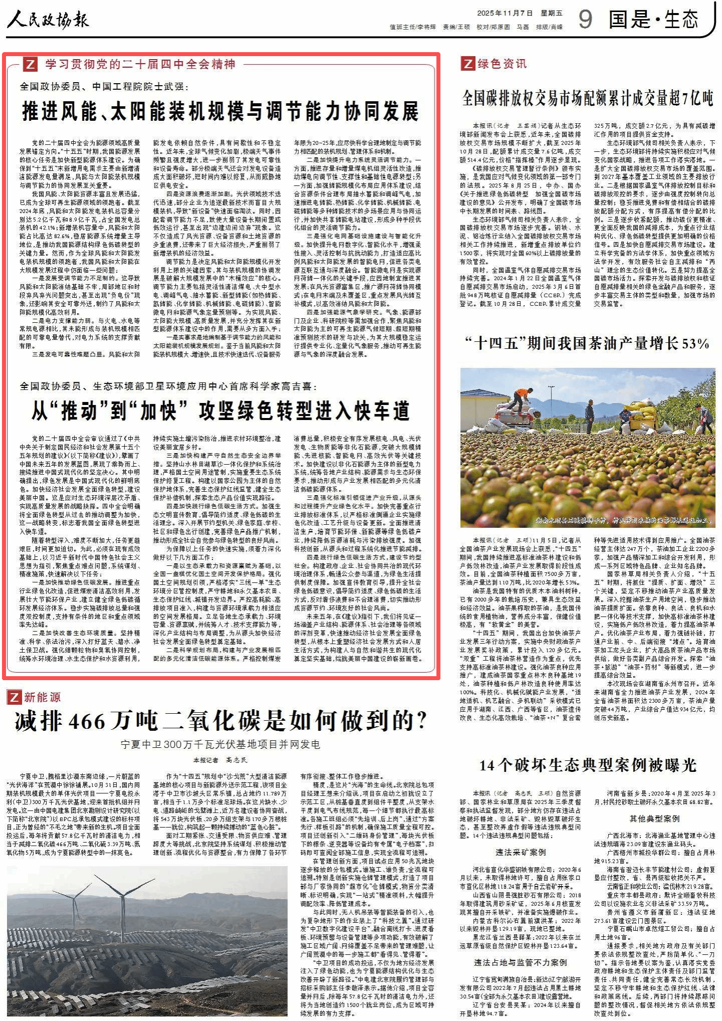 【人民政协报】推进风能、太阳能装机规模与调节能力协同发展